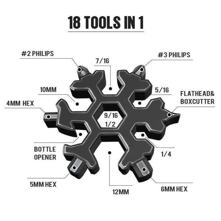 The 18 in 1 Snowflake Multi-Tool is one of the handiest tools you will own. Its unique snowflake design makes sure that it can be used in so many different ways!