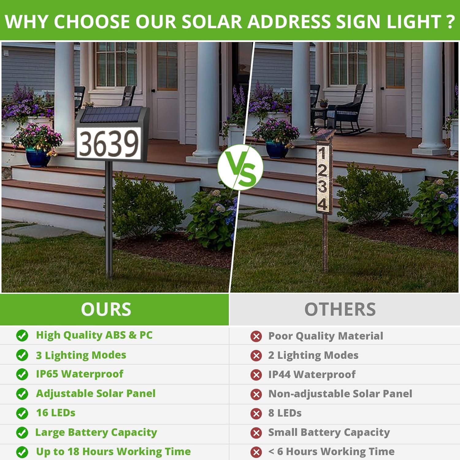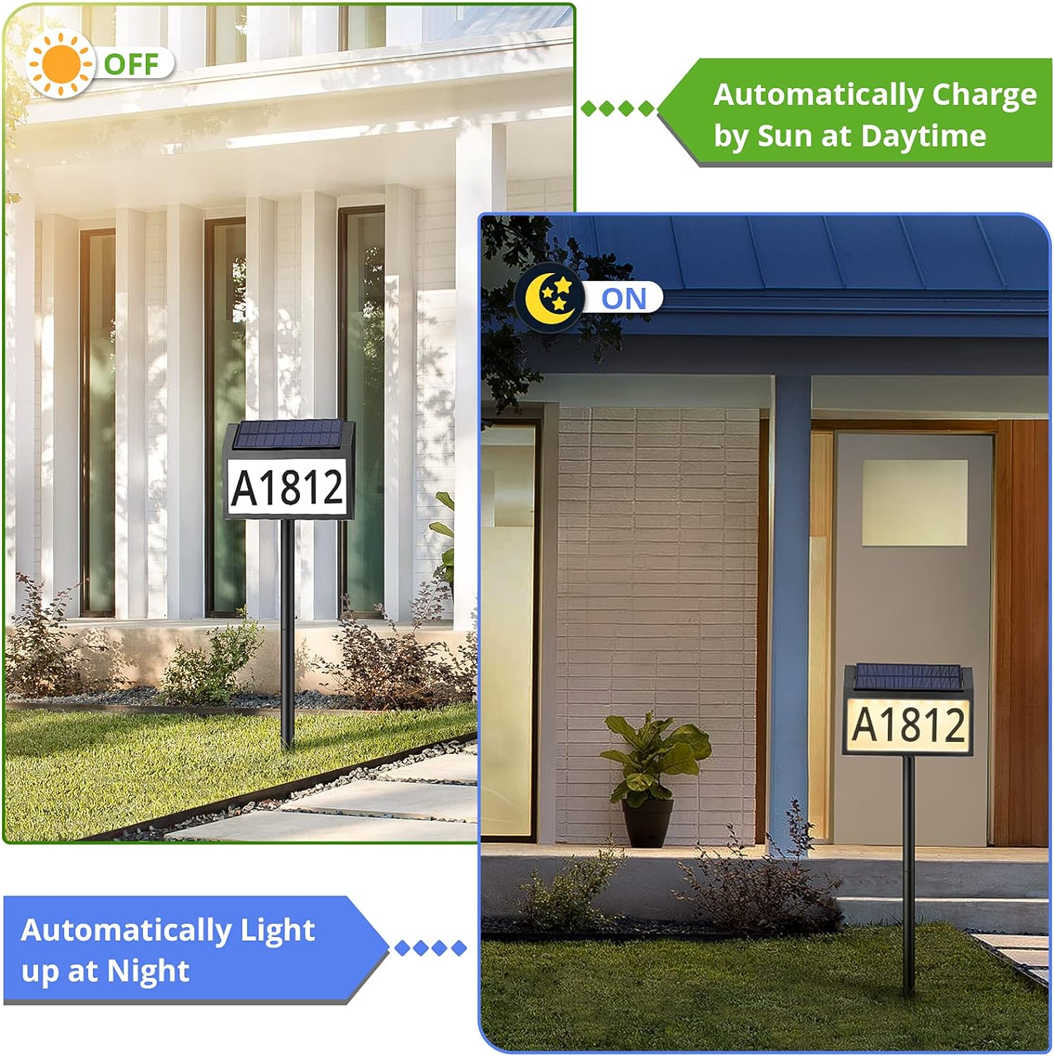 Switch colors with sun power! 🌞 Auto-lit house numbers. Eco-friendly & weatherproof.