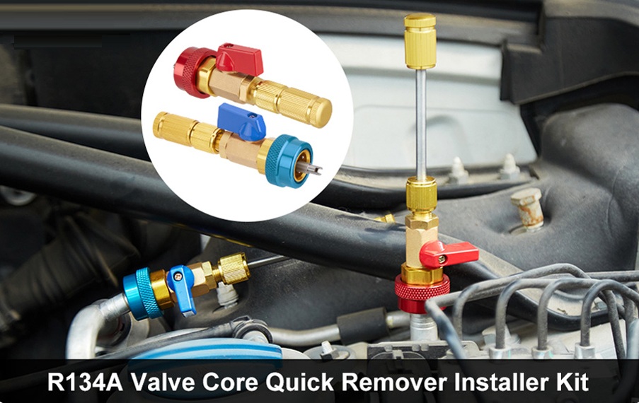 - ❅EASY TO USE: 134A Valve Core Quick Remover Installer no additional hardware required. Although the valve rod has very strong suction power and can hold the valve firmly, we recommend you use a dab of grease and gummed the end of the removal rod to insure that the schrader valve stick the valve core during removal. If there was not enough clearance for the cut off valve to close with a core attached to the tool, just slowly unscrew the removal tool back up its threads to get the valve to shut.